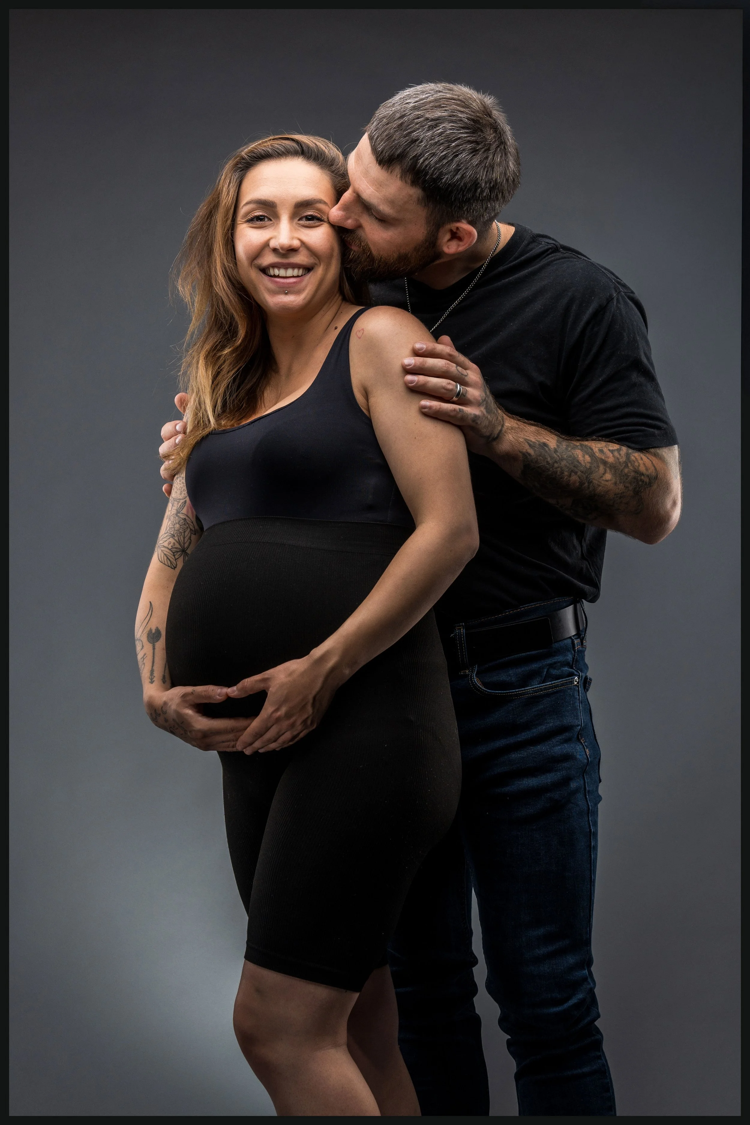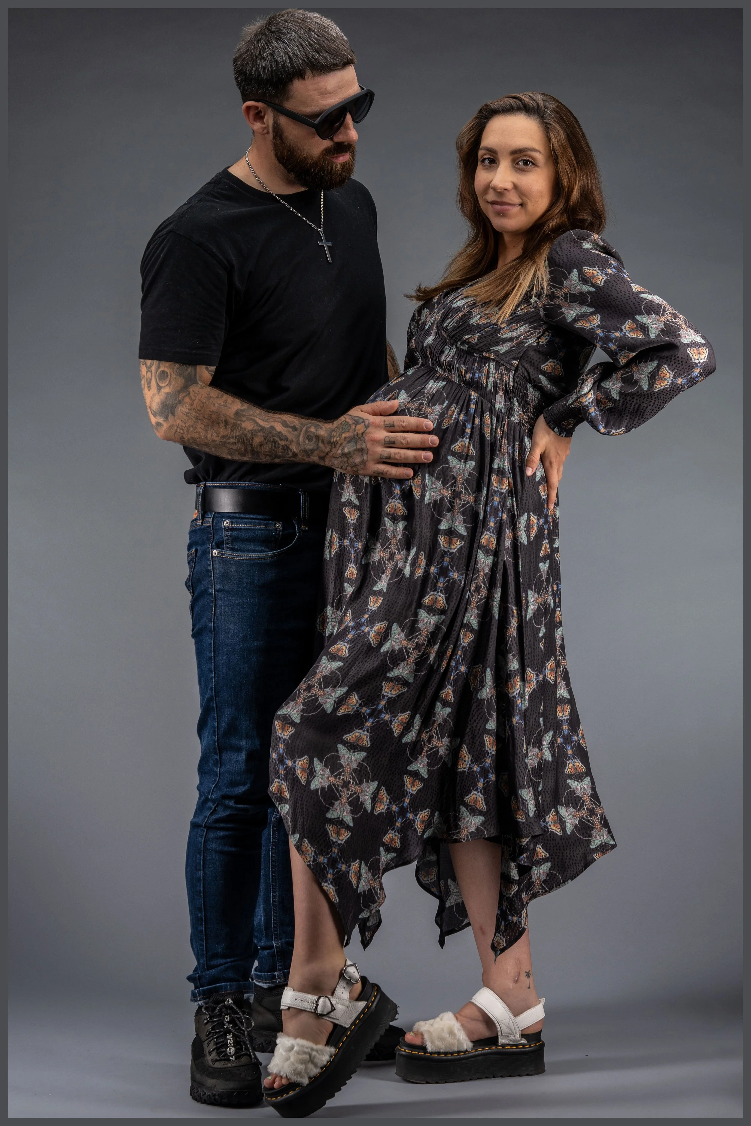 Capturing the joy and anticipation of expecting parents, this portrait beautifully encapsulates a moment of shared happiness and connection. The warm expressions and the gentle, caring touch on the expectant mother’s belly create a timeless image of love and unity. The natural poses and soft lighting enhance the intimate atmosphere, making this portrait a treasured keepsake for the family. Perfect for those looking to commemorate life's precious milestones.